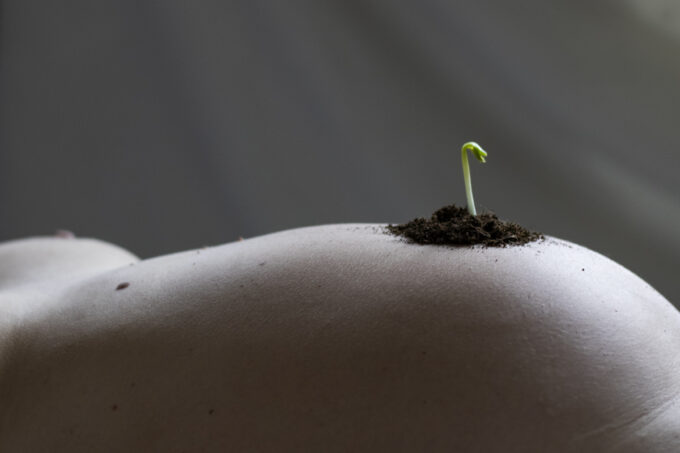 Natura e Donna generano un meraviglioso intreccio di respiro e pensiero fecondo entrambe femmine e progenitrici, i loro fluidi confluiscono in un incessante ritmo ciclico di potenza creatrice che da sempre incanta l’umanità’.