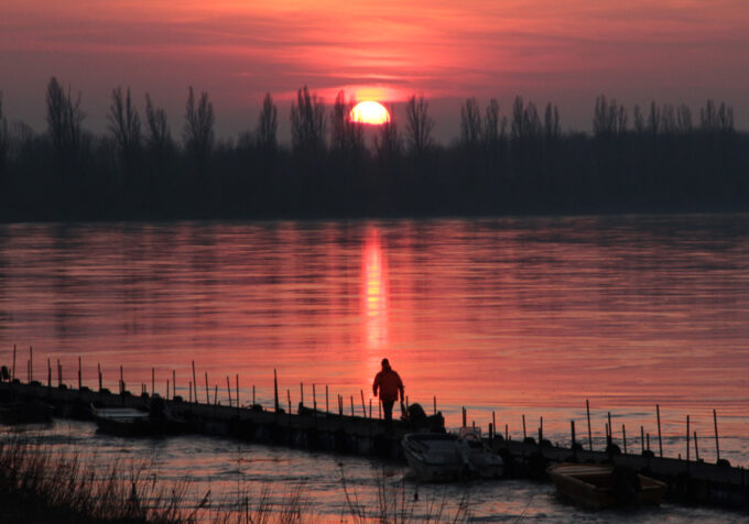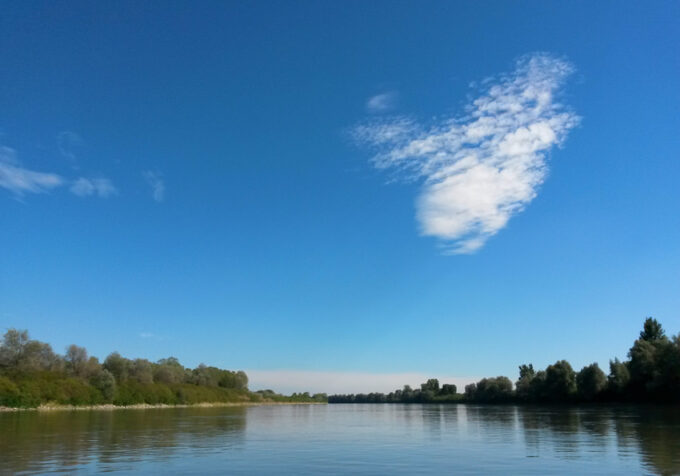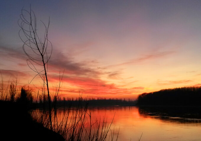 Alla luce di questo pensiero ho ritenuto che le mie ‘perle di fiume’ potessero invitare a cogliere aspetti molto differenti, a volte conflittuali, persino dicotomici, della Natura del nostro fiume Po: placido/vorticoso, rigoglioso/desertico, colorato/monocromatico; la Bellezza del Po non è mai uguale a se stessa, ed è profondamente fuorviante avvicinarsi ai suoi paesaggi con pregiudizi dettati dalla scontatezza, dall’ovvietà, che banalizzano inevitabilmente e riducono il valore delle possibilità di osservazione e riflessione; per questo ogni immagine è per me una ‘perla d fiume’, ognuna diversa, ognuna con le sue caratteristiche peculiari, e ciascuna preziosa, poiché impermanente ed irripetibile, prospettiva ancora una volta presente nella filosofia di Eraclito che, con una metafora fluviale il cui significato è perfetto anche per le mie immagini, in un altro frammento a lui attribuito, scrive: πάντα ῥεῖ ὡς ποταμός, cioè “tutto scorre come un fiume”. Ecco allora che le fotografie qui esposte sono sfaccettature di un fiume che esiste da (quasi) sempre, che attraversa terre e tempo, restando se stesso e continuamente cambiando; è la natura stessa del Po, che cambia sempre tracciato, che crea un nuovo corso, in perenne mutamento.