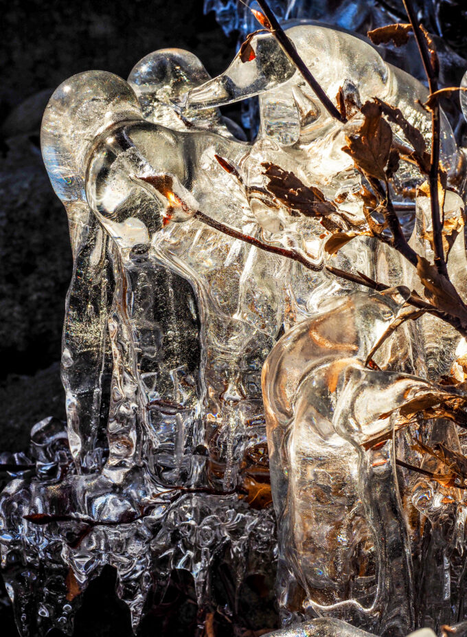 2° “Invisibile dentro” – fuori le mura presso la biblioteca Santa Croce, Via Adua 57, con 20 pannelli 50×67 di piccoli paesaggi con particolari di acque, foglie, ghiaccio, riflessi ecc.