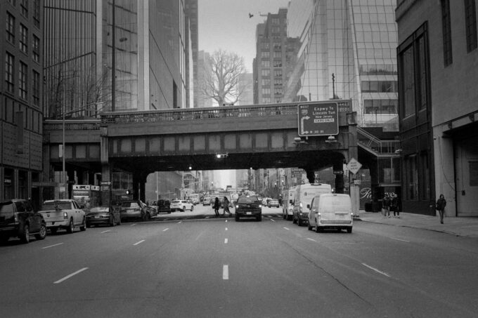 In cammino lungo le strade, gli angoli, le altezze vorticose di New York con una macchina fotografica analogica per immortalare la contemporaneità che scorre rapida e senza sosta. La fotografia in bianco e nero ferma il tempo e rende visibile l’essenziale, imprimendo su pellicola ciò che è invisibile agli occhi umani. E in un gioco di incastri controllati solo dal destino, l’immagine restituisce uno scenario sospeso tra il reale e l’onirico che svela l’indicibile: una metropoli condensata di asfalto e cemento è costantemente pervasa dalla natura che a volte bussa impetuosa, altre volte interroga l’esistenza umana, altre volte ancora si mette in disparte per solleticare l’attenzione di sguardi annoiati.