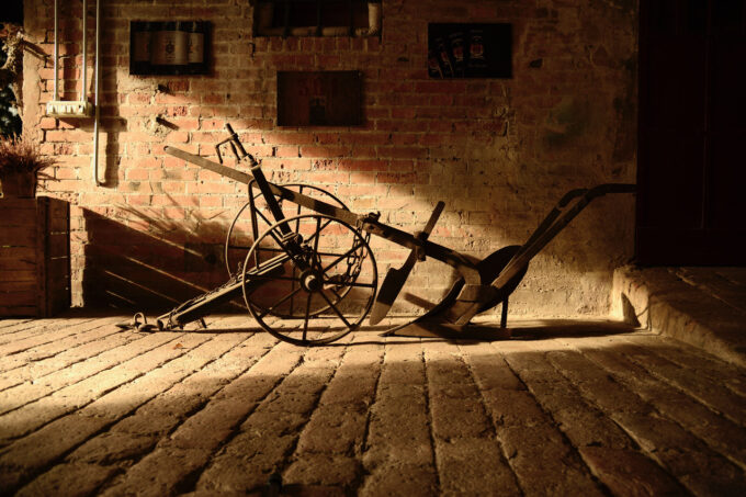 Passando poi agli ambienti più interni, dove si lavora e soprattutto si conserva il vino, si viene avvolti da una atmosfera di luci e di ombre in un tempo sospeso che sottolinea l’infinita tensione e frustrazione dell’uomo verso la ricerca di una perfezione irraggiungibile.
